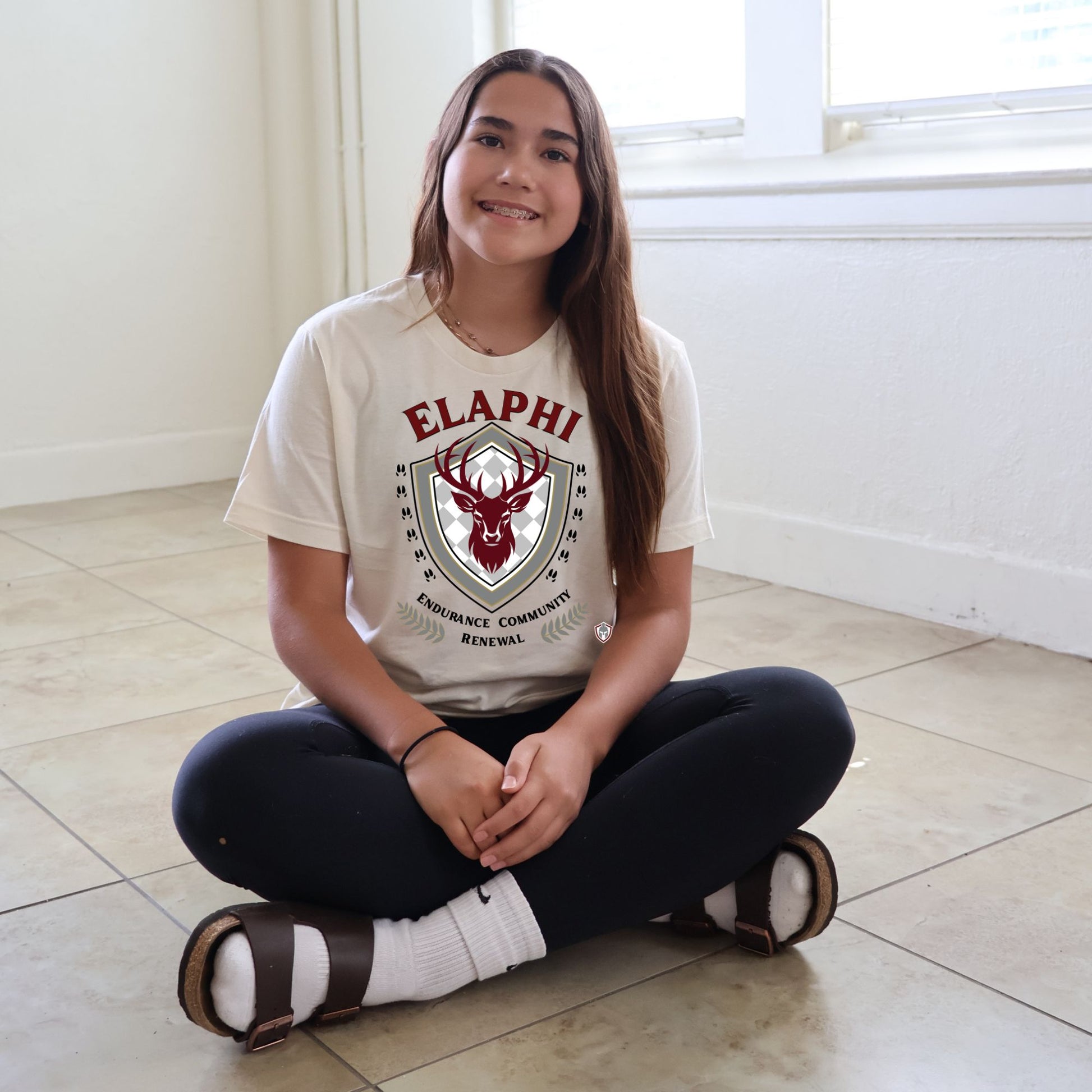A striking deer head emblem over a shield, framed by the words "Endurance, Community, Renewal." It's a symbol of strength and resilience, anchored by the ELAPHI name.